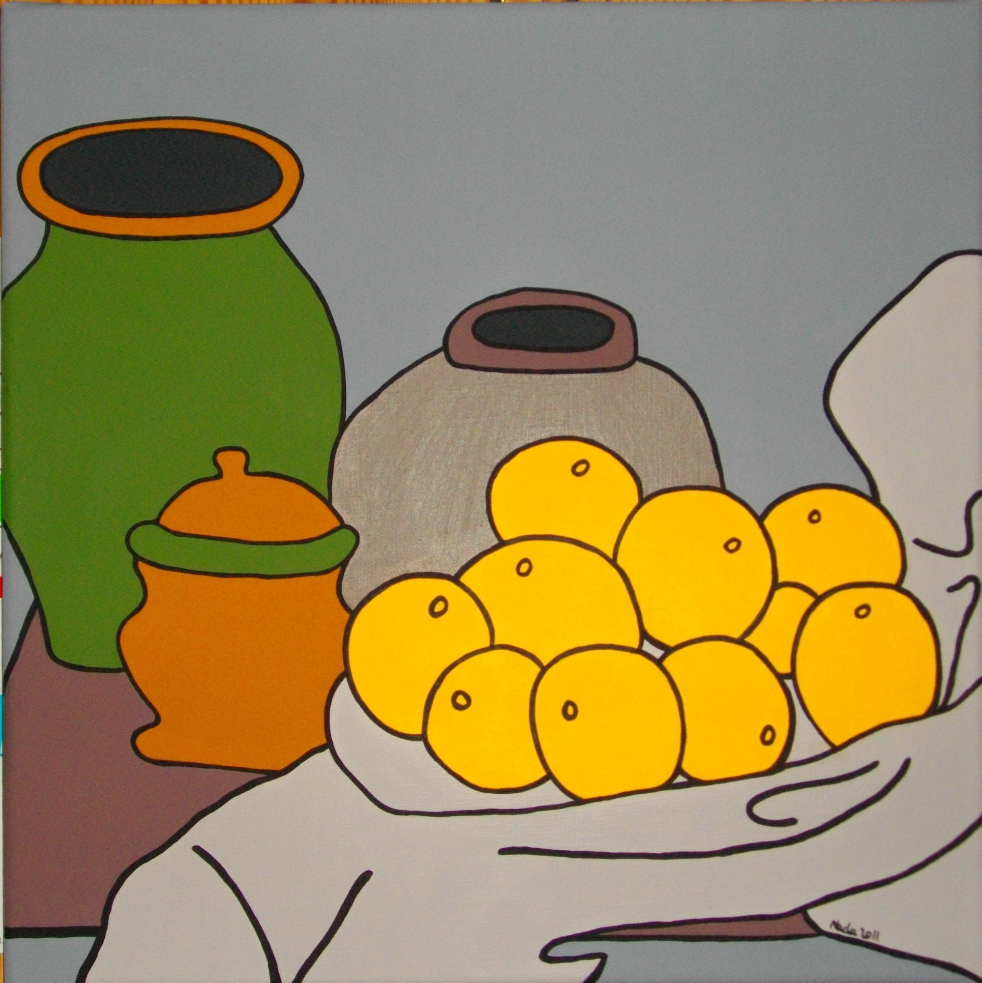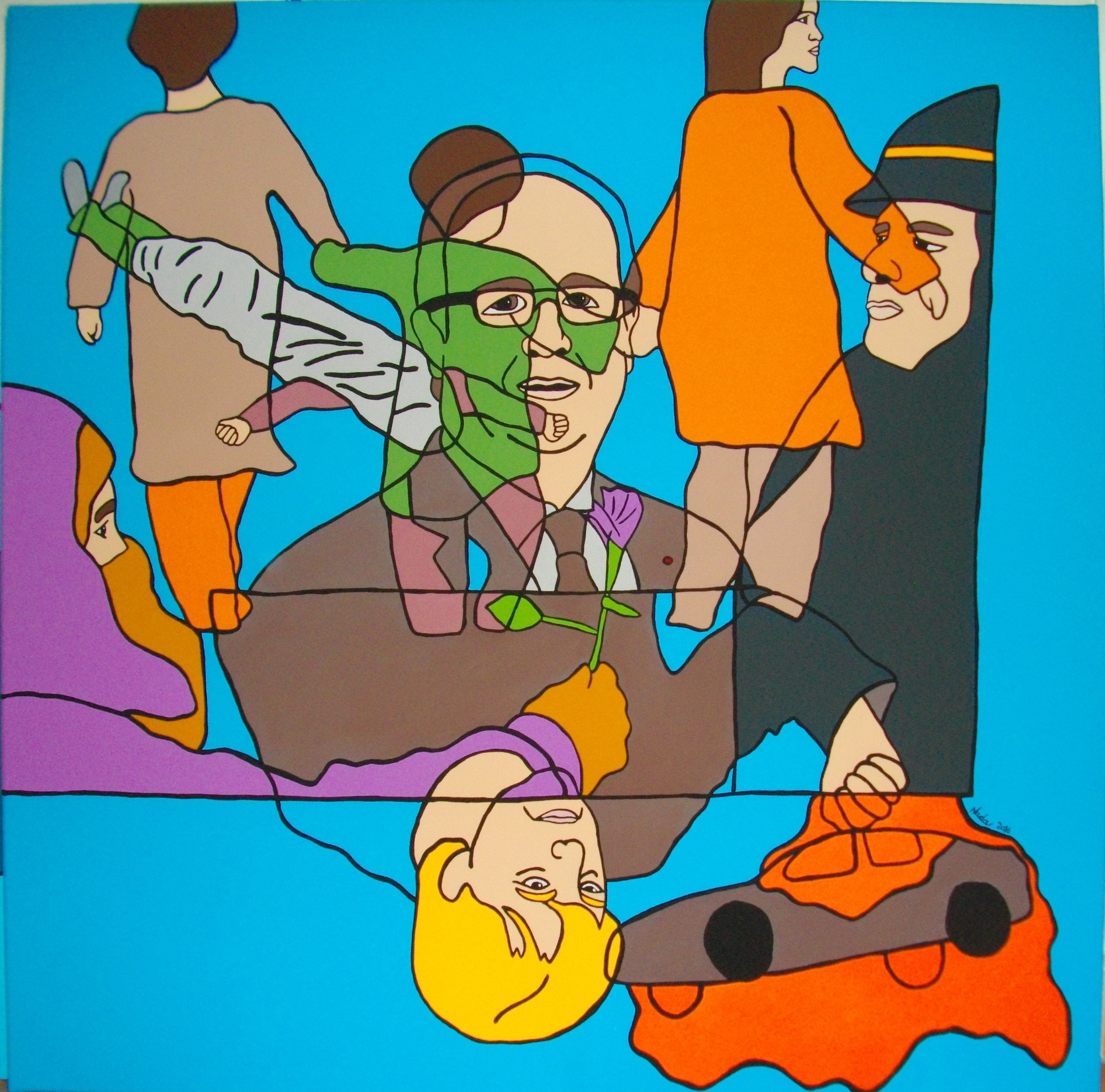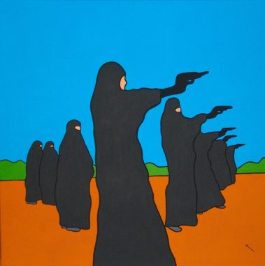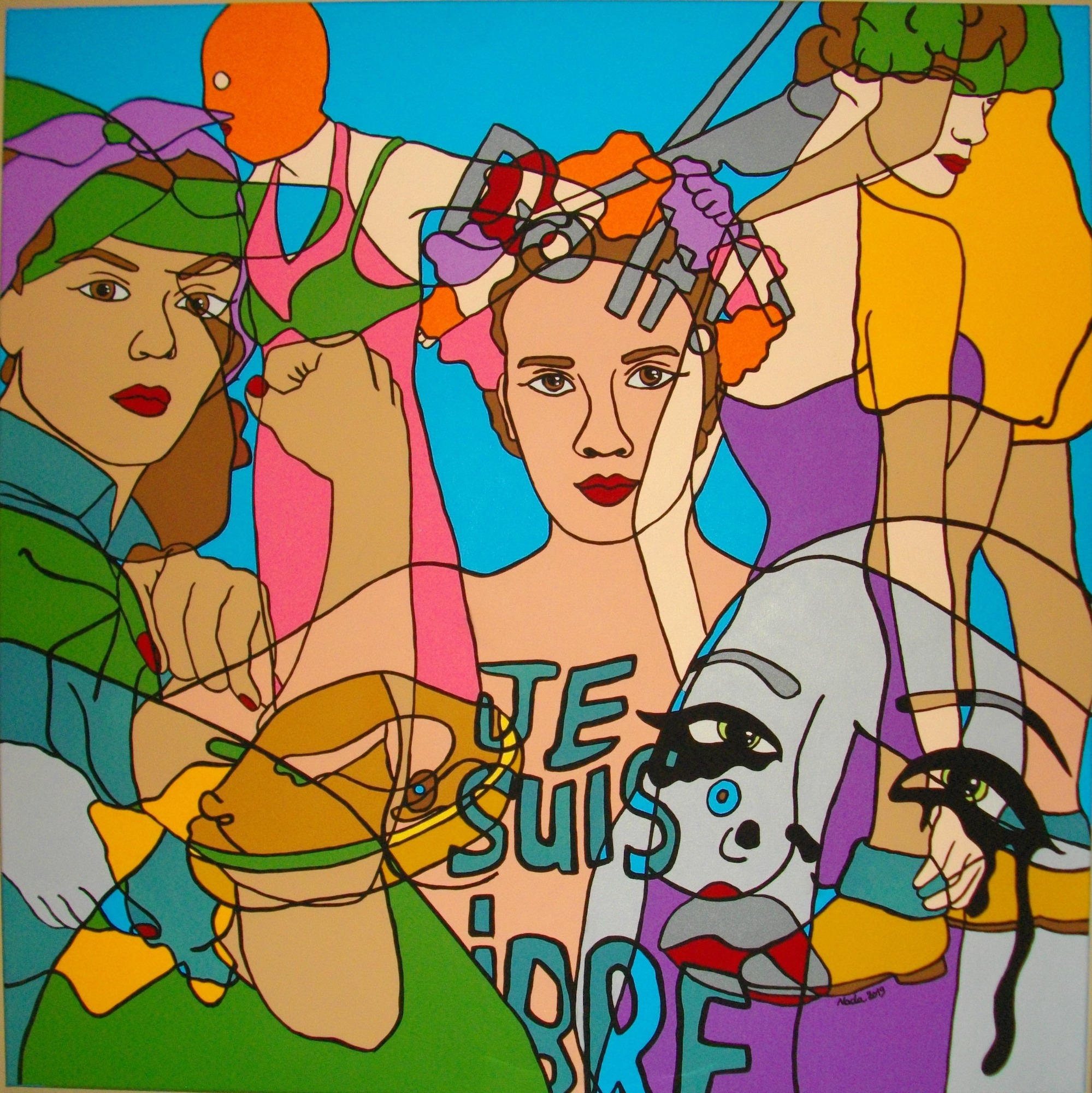 Ce travail en série intitulé "No Comment" est un mélange d'engagement et de colère basé sur des sujets socio-politiques. Il donne à voir le monde à travers une seconde lecture de photos déjà empreintes de force. Il s'agit de tirer "l'ultra-essentiel" du cliché sur lequel ne paraît que l'essentiel. Exit les ombres et lumières, exit les détails. La couleur vive et éclatante s'oppose à la brutalité du sujet. Le trait simplifié pour ne garder que la force du mouvement. La ligne noire rappelant la ligne claire pour souligner ces êtres qui ne rêvent qu'à la paix et à la vie dont ils sont provisoirement éloignés. Soyons vigilants, gardons les yeux ouverts. Nada
