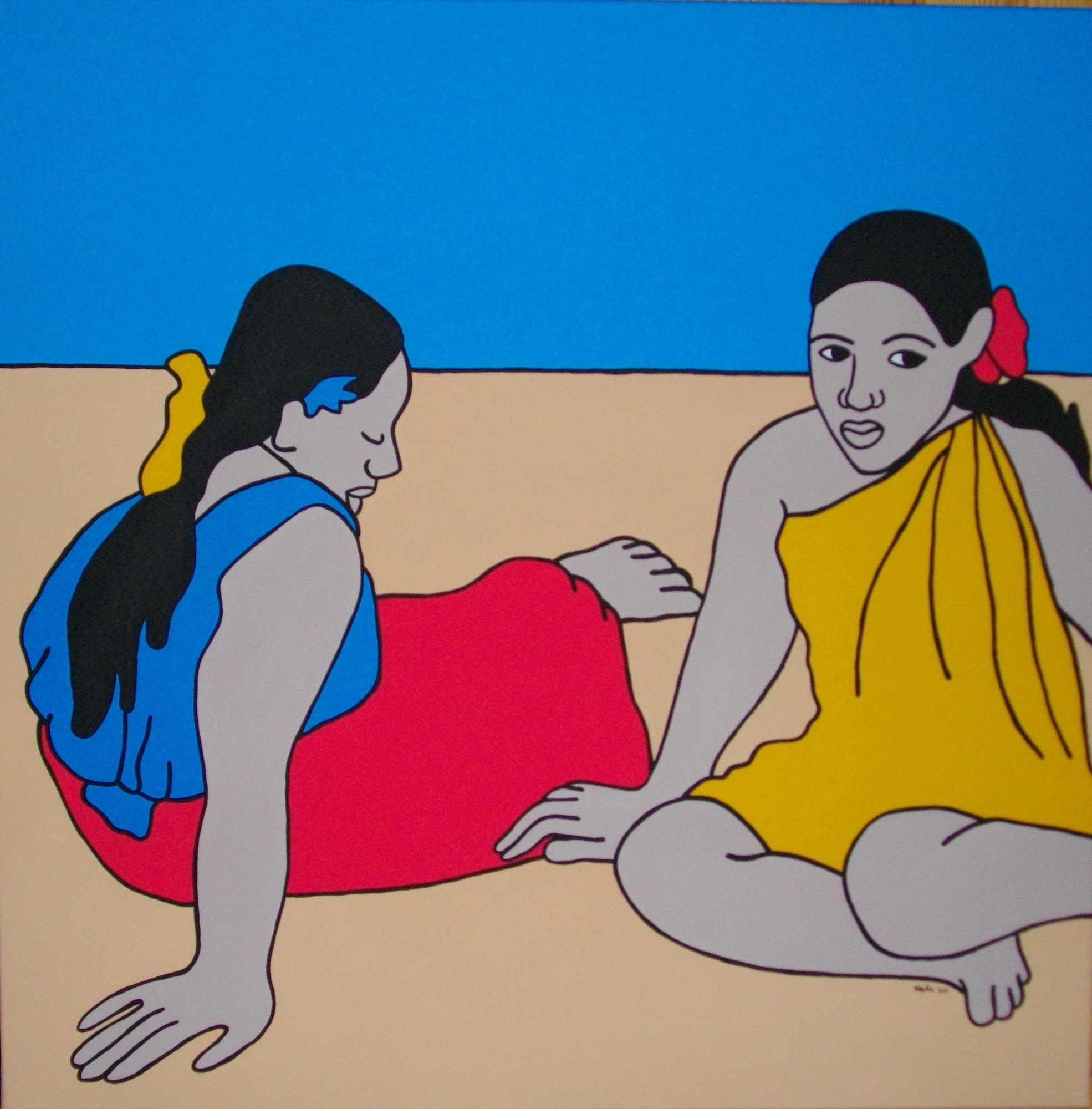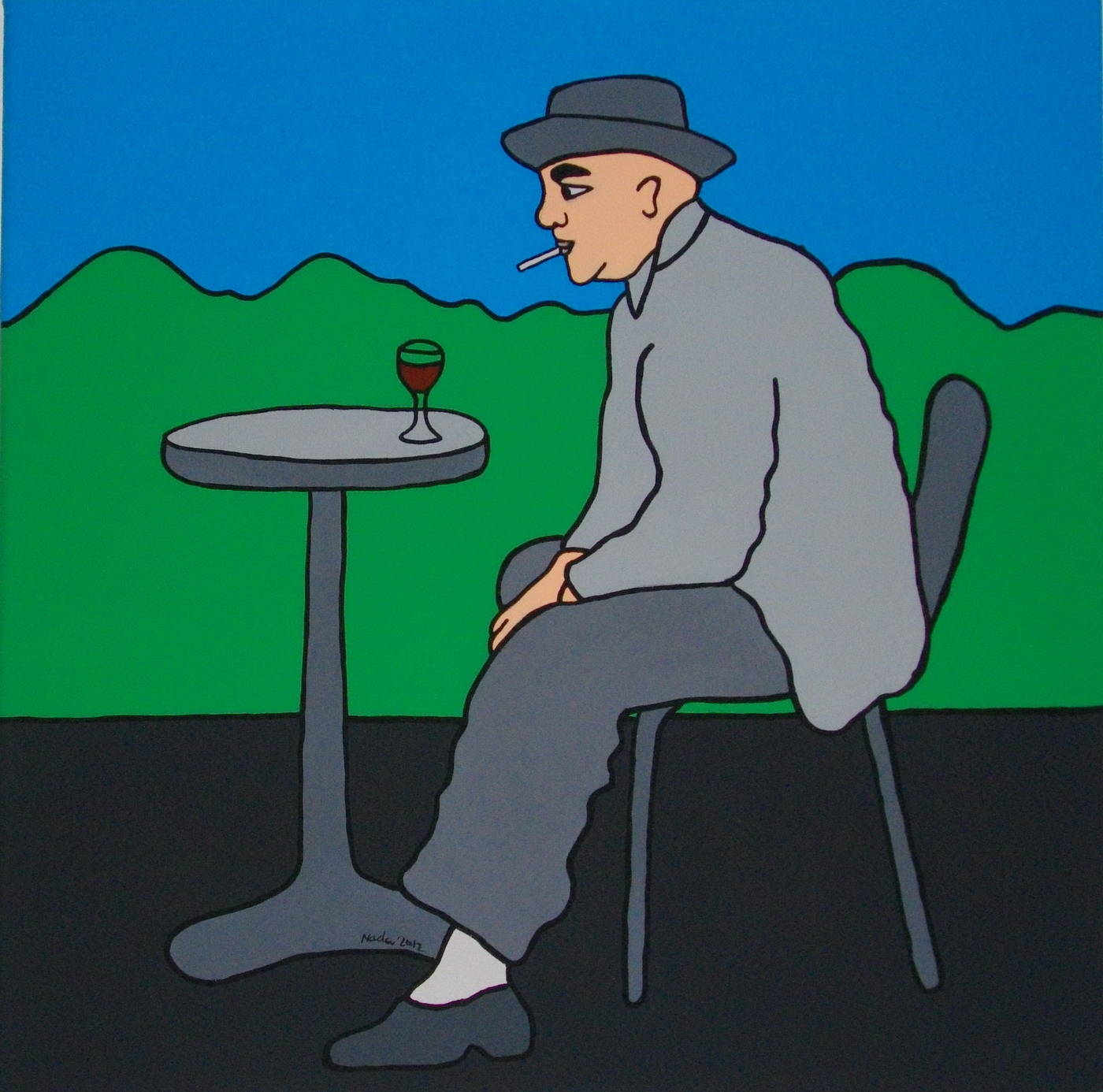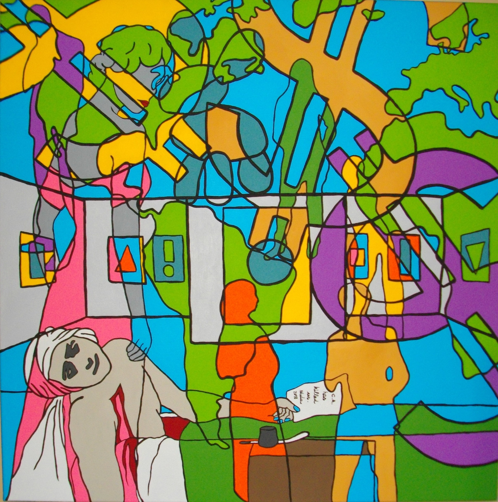 Ce travail en série intitulé "No Comment" est un mélange d'engagement et de colère basé sur des sujets socio-politiques. Il donne à voir le monde à travers une seconde lecture de photos déjà empreintes de force. Il s'agit de tirer "l'ultra-essentiel" du cliché sur lequel ne paraît que l'essentiel. Exit les ombres et lumières, exit les détails. La couleur vive et éclatante s'oppose à la brutalité du sujet. Le trait simplifié pour ne garder que la force du mouvement. La ligne noire rappelant la ligne claire pour souligner ces êtres qui ne rêvent qu'à la paix et à la vie dont ils sont provisoirement éloignés. Soyons vigilants, gardons les yeux ouverts. Nada