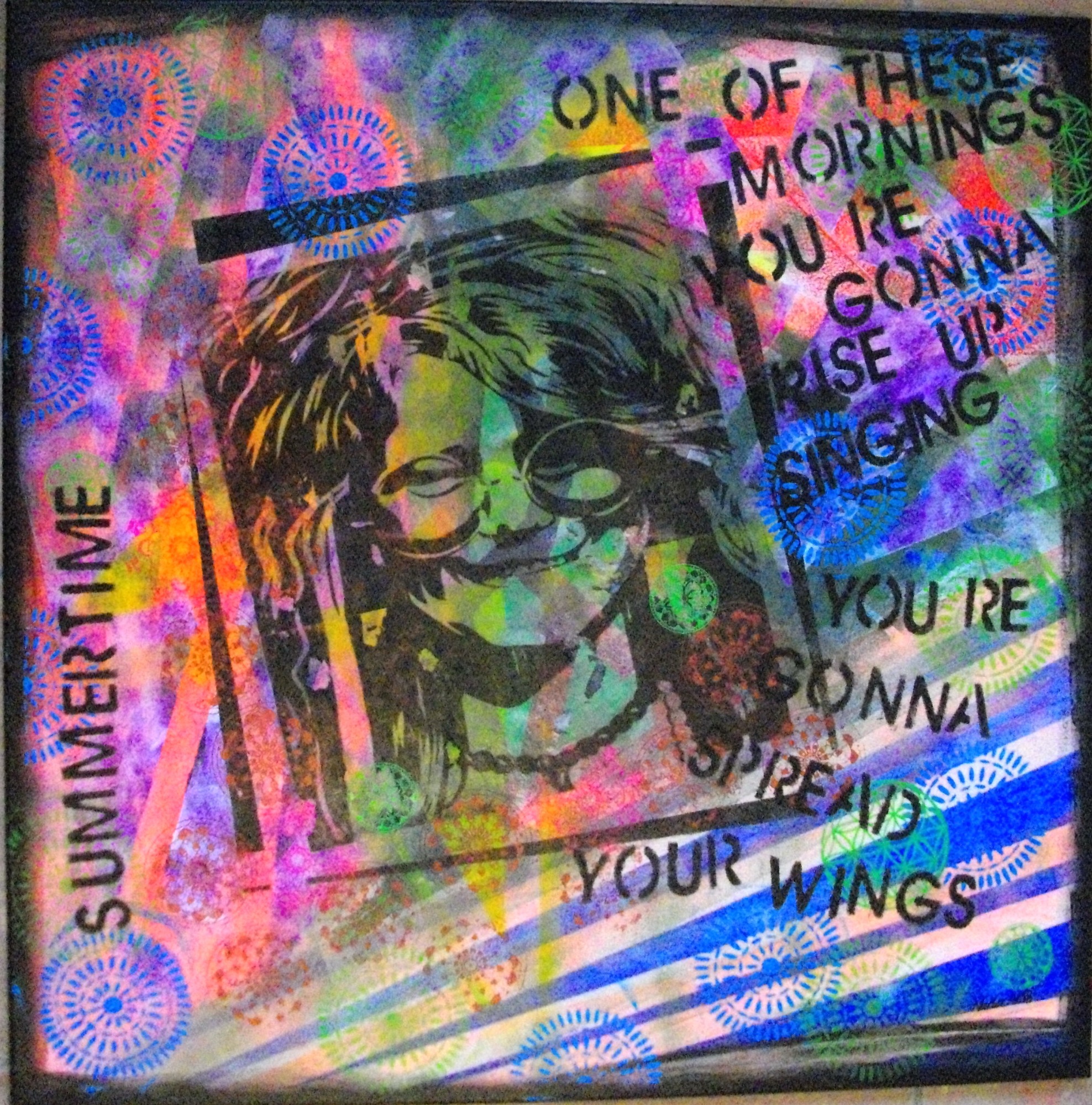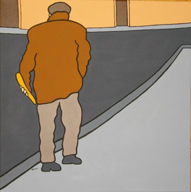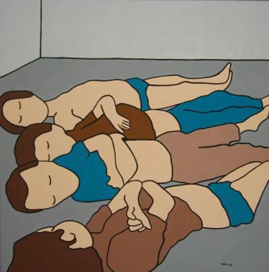 Série de sérigraphies réalisées sur toiles selon un procédé à partir de photocopies en noir et blanc, colle et peinture acrylique.