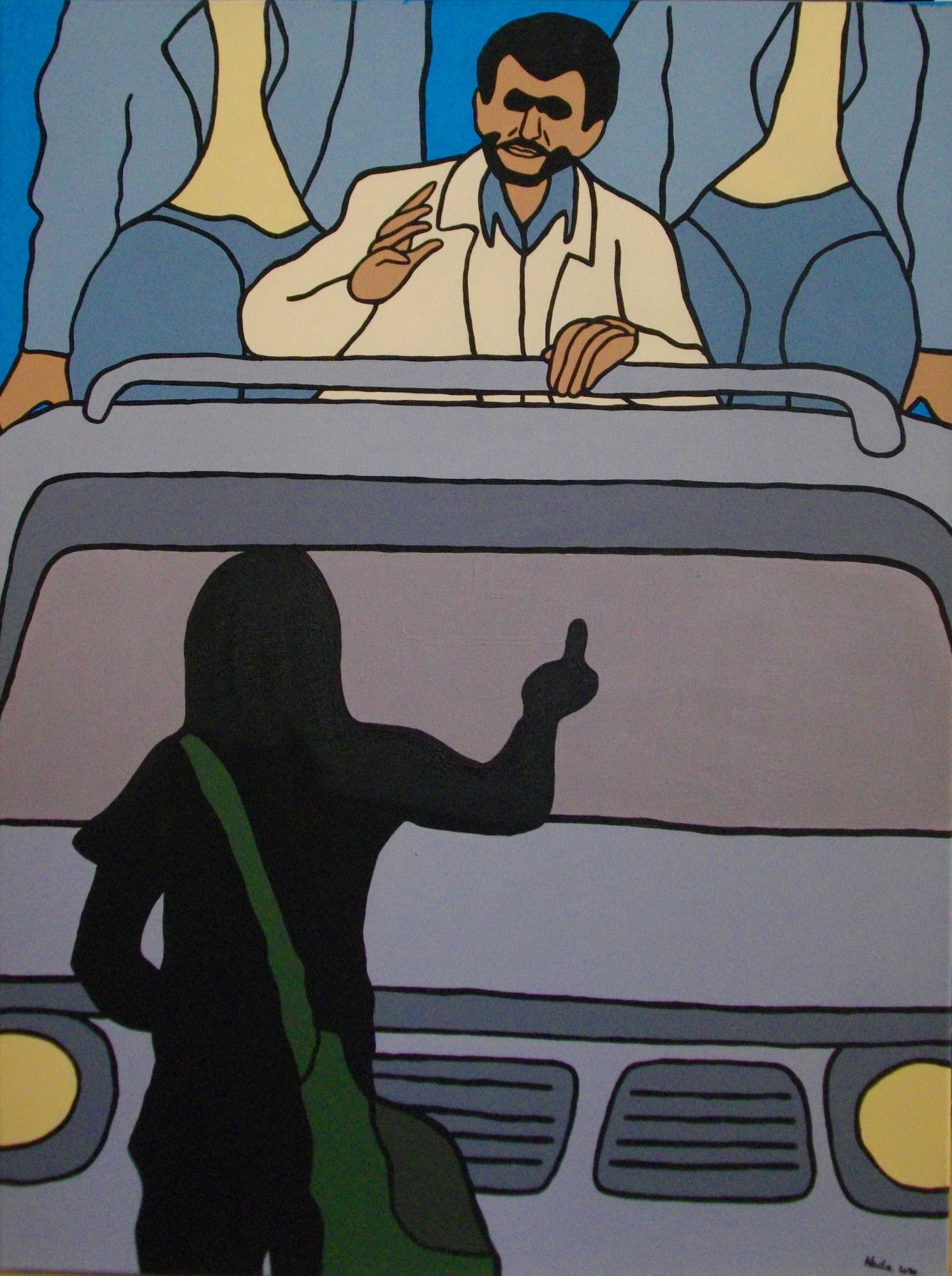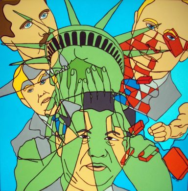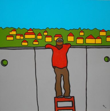 Série intitulée « Dark Side of the World », mon travail, d’ordre social et sociopolitique, s’articule autour de la société dans sa complexité et a pour fonction d’agir sur le comportement social. Il donne à réfléchir et à voir ce que nous sommes et comment la société nous influence. Ce fil conducteur, “la société” permet d’explorer les mécanismes internes de l’individu en se laissant guider par ce qui interpelle, ce qui touche de près ou de loin, ce qui tourmente. Il s’agit de bousculer notre vision du monde, de déranger, de mettre le doigt sur les perversions et l’oppression par le pouvoir de l’art, qui est de se situer là où la perception de la réalité semble devoir faire l’objet d’un réajustement.