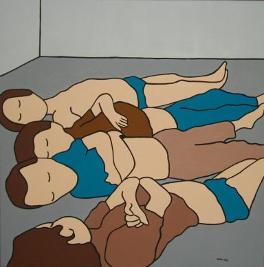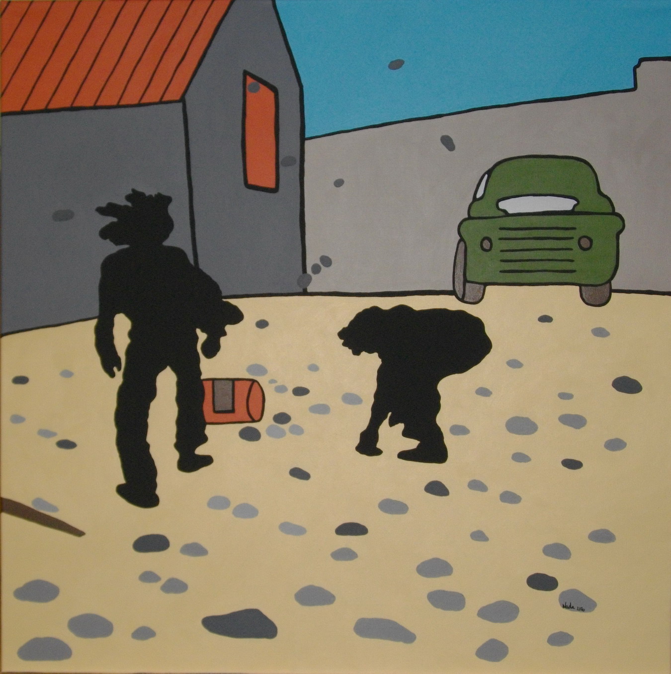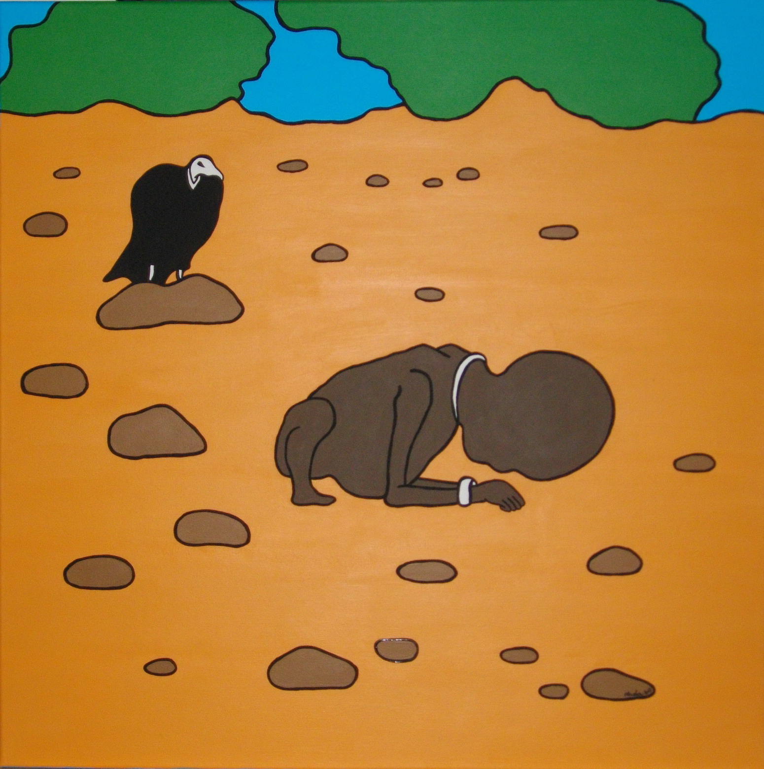 Ce travail en série intitulé "No Comment" est un mélange d'engagement et de colère basé sur des sujets socio-politiques. Il donne à voir le monde à travers une seconde lecture de photos déjà empreintes de force. Il s'agit de tirer "l'ultra-essentiel" du cliché sur lequel ne paraît que l'essentiel. Exit les ombres et lumières, exit les détails. La couleur vive et éclatante s'oppose à la brutalité du sujet. Le trait simplifié pour ne garder que la force du mouvement. La ligne noire rappelant la ligne claire pour souligner ces êtres qui ne rêvent qu'à la paix et à la vie dont ils sont provisoirement éloignés. Soyons vigilants, gardons les yeux ouverts. Nada