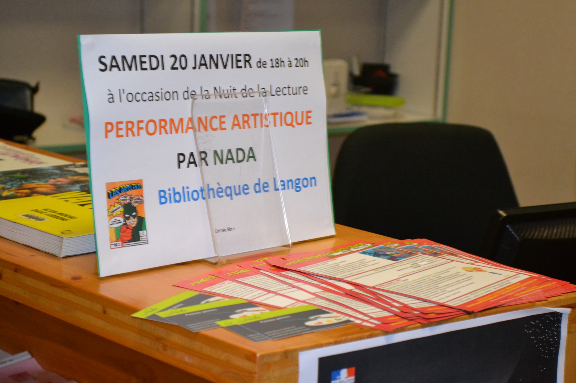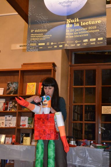 Performance réalisée le samedi 20 janvier 2018 dans le cadre de l'événement "La Nuit de la Lecture 2018", au sein de la bibliothèque de Langon (33).