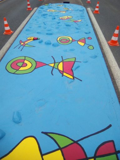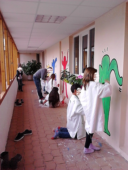 Fresque réalisée dans le cadre des TAP Arts Plastiques, avec 18 élèves de CM2 à l'école Georges Brassens de Toulenne (33) en 2015. Le but était de dynamiser le couloir menant au restaurant scolaire. Cette fresque se veut être ludique pour les enfants de l'école élémentaire.